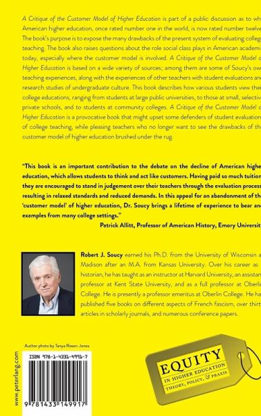 A Critique of the Customer Model of Higher Education is part of a public discussion as to why American higher education, once rated number one in the world, is now rated number twelve. The book's purpose is to expose the many drawbacks of the present system of evaluating college teaching. The book also raises questions about the role social class plays in American academia today, especially where the customer model is involved. A Critique of the Customer Model of Higher Education is based on a wide variety of sources; among them are some of Soucy's own teaching experiences, along with the experiences of other teachers with student evaluations and research studies of undergraduate culture. This book describes how various students view their college educations, ranging from students at large public universities, to those at small, selective private schools, and to students at community colleges. A Critique of the Customer Model of Higher Education is a provocative book that might upset some defenders of student evaluations of college teaching, while pleasing teachers who no longer want to see the drawbacks of the customer model of higher education brushed under the rug.