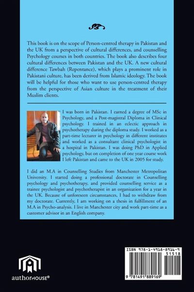This book is about the scope of Person-centred therapy in Pakistan and the UK from perspective of cultural differences, and counseling psychology courses in both countries. The book describes four cultural differences between Pakistan and the UK, but a new cultural difference Tawbah (Repentance), which plays a prominent role in Pakistani culture, has been derived. The book will be helpful for those who want to study culture in Asia and Great Britain, and for psychologists, psychotherapists, and person-centred therapists who provide psychotherapy and counseling to their Muslim clients.