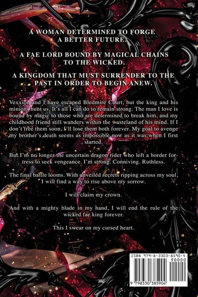 A woman determined to forge a better future. A fae lord bound by magical chains to the wicked. A kingdom that must surrender to the past in order to begin anew. Vexxion and I have escaped Bledmire Court, but the king and his minions hunt us. It's all I can do to remain strong. The man I love is bound by magic to those who are determined to break him, and my childhood friend still wanders within the wasteland of his mind. If I don't free them soon, I'll lose them both forever. My goal to avenge my brother's death seems as impossible now as it was when I first started. But I'm no longer the uncertain dragon rider who left a border fortress to seek vengeance. I'm strong. Conniving. Ruthless. The final battle looms. With unveiled secrets ripping across my soul, I will find a way to rise above my sorrow. I will claim my crown. And with a mighty blade in my hand, I will end the rule of the wicked fae king forever. This I swear on my cursed heart. A Crown of Cursed Hearts is Book 3 and the conclusion in the Kingdom of Blighted Thorns trilogy and is told in dual point of view. Expect spice, suspense, a fearless, determined woman, and a fae lord who will burn the world down for her.