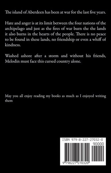 The island of Aberdeen has been at war for the last five years. Hate and anger is at its limit between the four nations of the archipelago and just as the fires of war burn the the lands it also burns in the hearts of the people. There is no peace to be found in these lands, no friendship or even a whiff of kindness. Washed ashore after a storm and without his friends, Melodin must face this cursed country alone.