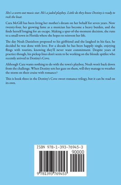 She's a worn-out music star. He's a jaded playboy. Little do they know Destiny is ready to rock the boat. Cara McGill has been living her mother's dream on her behalf for seven years. Now twenty-four, her growing fame as a musician has become a heavy burden, and she finds herself longing for an escape. Making a spur-of-the-moment decision, she runs to a small town in Florida where she hopes to reinvent her life. The day Noah Danielson proposed to his girlfriend and she laughed in his face, he decided he was done with love. For a decade he has been happily single, enjoying flings with tourists, knowing they'll never want commitment. Despite years of practice though, his pickup lines don't seem to be working on the blonde spitfire who recently arrived in Destiny's Cove. Although Cara wants nothing to do with the town's playboy, Noah won't back down from the challenge. When Destiny sets her gaze on them, will they manage to weather the storm on their cruise with romance? This is book three in the Destiny's Cove sweet romance trilogy, but it can be read on its own.