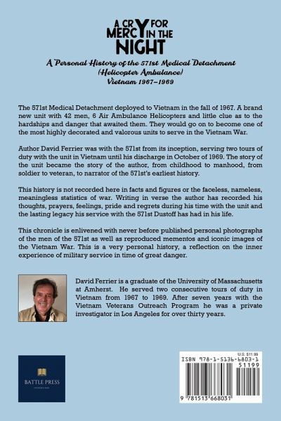 This is a chronicle, in verse, of my personal journey to, during, and after serving in a Dustoff unit in Vietnam. Dustoff units provided front-line medical evacuation of the wounded from the battlefield to the field hospital in unarmed, fragile, flammable UH-1H helicopters. Our ships drew enemy fire at a rate seven times higher than any other aircraft flying in the combat zone and our crews suffered casualties of one in three completing these missions of mercy. The dedication, courage, and personal cost of this endeavor to the men of these units have been both grievous and inspiring. I was privileged to have served in country with these men for twenty-two months and twenty days and was blessed with the opportunity to memorialize their actions.