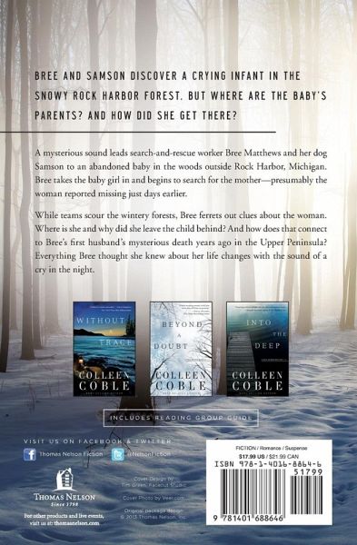 A mysterious crying in the night leads search-and-rescue worker Bree Matthews and her dog Samson to an abandoned baby in the woods outside of Rock Harbor, Michigan. Against objections from her husband, Bree takes the baby girl in. Quickly she begins a search for the mother---presumably the woman reported missing just days earlier.