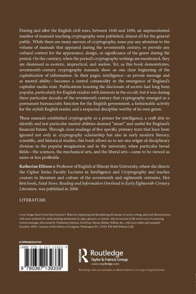 This book demonstrates that seventeenth-century cryptography manuals show clear beginning of the capitalization of information. It closely reads five specific primary texts that have been ignored in cryptography scholarship and in early modern literary, scientific, and historical studies.