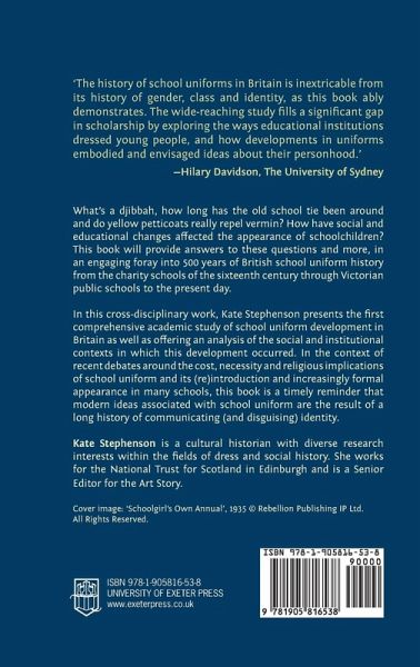 What's a djibbah, how long has the old school tie been around and do yellow petticoats really repel vermin? This book will provide answers to these questions and more, in an engaging foray into 500 years of British school uniform history from the charity schools of the sixteenth century through the Victorian public schools to the present day.