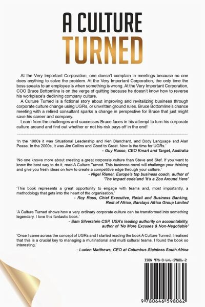 To the outside world, Australia-based Very Important Corporation is a thriving and successful company. What the world doesn’t know is that Bruce Bottomline, the COO, is on the brink of quitting because he knows in his heart that the company’s culture is driving it headlong toward its own demise. Bruce is a cofounder of this company with long-time friend and CEO Helen Hardcharger, so he doesn’t want to abandon their dream. But he can’t see any way to fix the problem. Fortunately for Bruce and all of his partners and employees, fate has planned a chance meeting on an airplane between him and Sam Sherlock. Sam introduces Bruce to the concept of UGRs, or unwritten ground rules. It turns out that at the Very Important Corporation, complaining in meetings is pointless because no one tackles the issues. And employees only get visits from their boss if something is wrong. Unwritten ground rules like these need a serious overhaul. This is the vehicle for change, and Bruce comes away recharged and prepared to put the company’s corporate culture back on a track. Learn from Bruce’s mistakes and triumphs how you, too, can address your company’s UGRs and revitalize its culture.