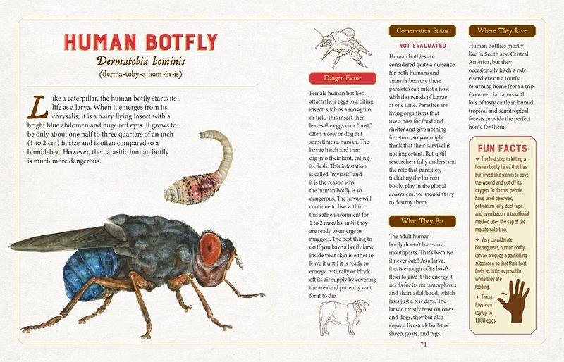 Sharks, snakes, and spiders get all the attention, but many of the most terrifying animals on the planet are probably ones you didn't know were so dangerous-like the otherworldly blue dragon, a tiny sea slug that can unleash a powerful sting, or the lethal mosaic crab, armed with a toxin 1,000 times deadlier than cyanide. And some creatures get rather creative when it comes to warding off predators-which is what makes them so amazing to read about. Take the adorable greater slow loris: This primate prepares to strike by first licking its venom-filled armpits! Before you run and hide, award-winning author and illustrator Sami Bayly shows how, once you understand why these animals have adapted to be so dangerous, you'll learn to appreciate their scarier sides. They're only trying to survive! And with so many of these species threatened or endangered, they're counting on us to learn to love and protect them . . . from a safe distance! Publisher's note: A Curious Collection of Dangerous Creatures was previously published in Australia under the title The Illustrated Encyclopaedia of Dangerous Animals.