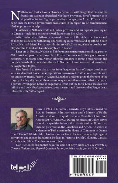 Nathan and Erika have a chance encounter with Serge Dubois and his friends in lavender-drenched Northern Provence. Serge's mission is to stop helicopter test flights planned by a company in Aix en Provence - to begin once the French government's missile silos in the region are de-commissioned. Nathan promises to help. Flashback to Nathan's youth in Quebec province and his exploits growing up in Canada - including encounters with his teenage foe, Allan. After university, Nathan is exposed to some of the rich experiences and challenges associated with living and working in Bermuda and apartheid South Africa. Nathan's friend Pierre meets his future wife, Suzanne, when he coaches and plays for the Villard-de-Lans hockey team in France. Later on, in Toronto, Nathan and his boutique management consulting partner, Mike, work on governance projects in Russia, Tanzania and other global corrupt hot spots. At the same time, Nathan takes the initiative to attract a major resort and hotel chain to build upscale health spas in Northern Provence - as an alternative to helicopter test flights. Fast forward to news that arrives from Jacques in Paris of Serge's death in an auto accident that has left many questions unanswered. Nathan re-connects with his university friend, Pierre, in Avignon, and they decide to get to the bottom of the tragedy. As they dig deeper there are more questions than answers that emerge, so a private investigator, Louis, is engaged to ferret out the facts. Louis uses his vast military and police background to expose the truth and discovers that Serge's death intersects with Nathan's past.