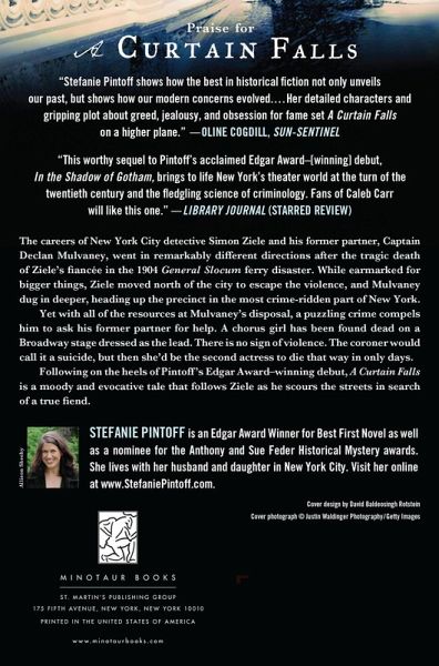 Following on the heels of Pintoff's Edgar Award-winning debut, A Curtain Falls is a moody and evocative tale that follows Ziele as he scours the streets in search of a true fiend. The careers of New York City detective Simon Ziele and his former partner, Captain Declan Mulvaney, went in remarkably different directions after the tragic death of Ziele's fiancée in the 1904 General Slocum ferry disaster. While earmarked for bigger things, Ziele moved north of the city to escape the violence, and Mulvaney dug in deeper, heading up the precinct in the most crime-ridden part of New York. Yet with all of the resources at Mulvaney's disposal, a puzzling crime compels him to ask his former partner for help. A chorus girl has been found dead on a Broadway stage dressed as the lead. There is no sign of violence. The coroner would call it a suicide, but then she'd be the second actress to die that way in only days.