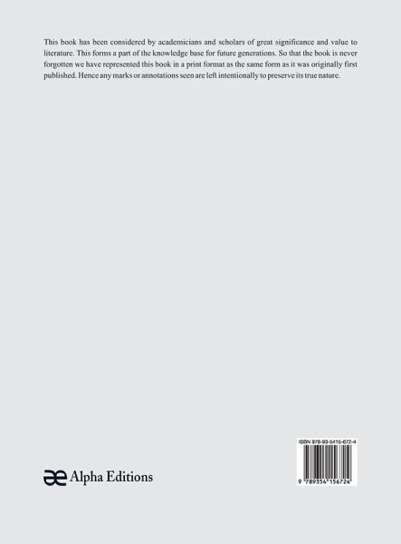 This book has been considered by academicians and scholars of great significance and value to literature. This forms a part of the knowledge base for future generations. So that the book is never forgotten we have represented this book in a print format as the same form as it was originally first published. Hence any marks or annotations seen are left intentionally to preserve its true nature.