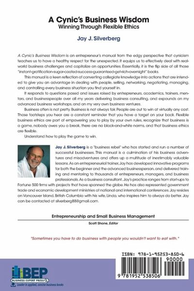 A Cynic's Business Wisdom is an entrepreneur's manual from the edgy perspective that cynicism teaches us to have a healthy respect for the unexpected. It equips us to effectively deal with real-world business challenges and capitalize on opportunities. Essentially, it is the flip side of all those "instant-gratification-sugar-coated-success-guaranteed-get-rich-overnight" books. This manual is a keen reflection of converting collegiate knowledge into actions that are intended to give you an advantage in dealing with people, selling, networking, negotiating, managing, and controlling every business situation you find yourself in. It responds to questions posed and issues raised by entrepreneurs, academics, trainers, mentors, and businesspeople over all my years delivering business consulting, and expounds on my advanced business workshops, and on my very own business ventures. Business often is not pretty. Business is not always fair. People are out to win at virtually any cost. Those footsteps you hear are a constant reminder that you have a target on your back. Flexible business ethics are part of empowering you to play by your own rules, recognize that business is a game, nobody owes you a break, there are no black-and-white norms, and that business ethics are flexible. Understand how to play the game to win.