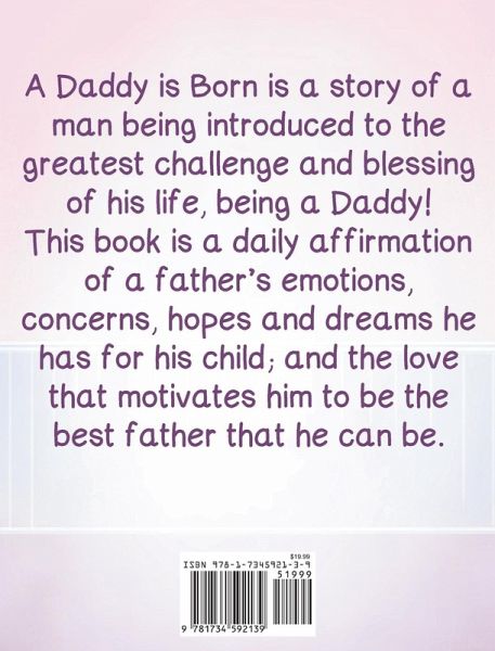 This story is for all those great fathers out there that have taken the responsibility of being called daddy, an honor and privilege. For those fathers that enjoy and look forward to leading and guiding their children through this journey called life, this book offers insights into the thoughts of a man becoming a father for the first time. His feelings are vividly portrayed in pictures that capture the essence of a father's excitement, surprise, and appreciation for his new found joy. Whether you've earned the title of father biologically, through adoption, or through pure admiration and love; this is a great book for any man that takes pride in the most important job he will ever have in his life.....being a daddy!Perfect gift for baby showers, birthdays, Father's Day, first libraries, and more! Depicts a father's unconditional love and dedicationfor his child's development and growth as a person. Vibrant and detailed illustrations by artist Jasmine T. Mills, make for an engaging and entertaining read. Speaks on themes of pride, responsibility, encouragement, and unconditional love. ¿