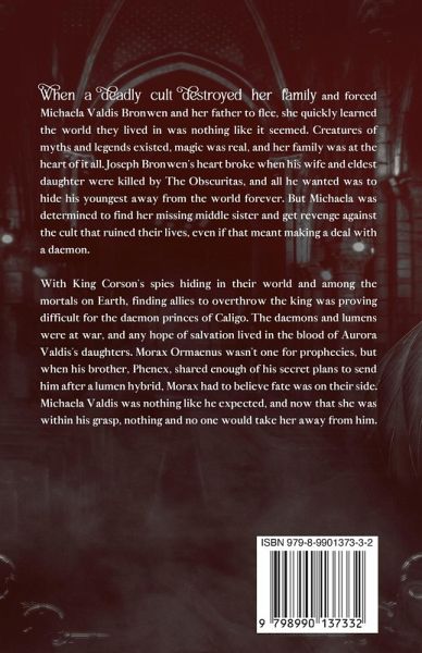 While Michaela and her father are in hiding from a deadly cult, she discovered a world of magic, daemons and lumens. She is determined to escape the fate of her murdered mother and sister by making a deal with a demon.