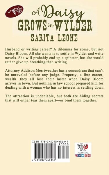 Husband or writing career? A dilemma for some, but not Daisy Bloom. All she wants is to settle in Wylder and write novels. She will probably end up a spinster, but she would rather give up breathing than writing. Attorney Addison Merriweather has a conundrum that can't be unraveled before any judge. Property, a fine career, wealth...they all lose their luster when Daisy Bloom arrives in town. But nothing in law school prepared him for dealing with a woman who has no interest in settling down. The attraction is undeniable, but both are hiding secrets that will either tear them apart-or bind them together.
