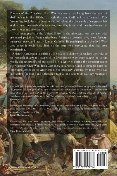 The era of the American Civil War is assessed as being from the start of abolitionism in the 1830s, through the war itself and its aftermath. This fascinating book deals in detail with the Ireland the thousands of emigrants left at this time, their arrival in America, how they fared, and their involvement in the civil war and afterwards. Irish immigrants to the United States in the nineteenth century met with prolonged prejudice from native-born Americans because they were foreign, numerous, poor, and mostly Roman Catholic. By participating in the Civil War, they hoped it would help diminish the negative stereotyping they had been experiencing. Aidan O'Hara's aim in writing this book is to share with readers the fruits of his research into what happened to Irish people who were caught up in the rapidly changing political and social life in America during the turbulent era of the American Civil War. Irish Catholics, in particular, had to struggle hard "to force open the doors of American life so zealously guarded by those who had first settled the land" and although it took a long time to do so, they eventually succeeded.