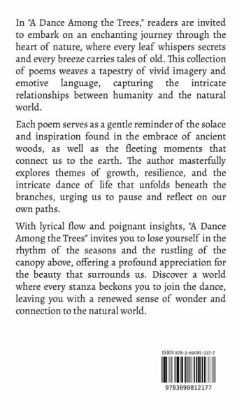 In "A Dance Among the Trees," readers are invited to embark on an enchanting journey through the heart of nature, where every leaf whispers secrets and every breeze carries tales of old. This collection of poems weaves a tapestry of vivid imagery and emotive language, capturing the intricate relationships between humanity and the natural world. Each poem serves as a gentle reminder of the solace and inspiration found in the embrace of ancient woods, as well as the fleeting moments that connect us to the earth. The author masterfully explores themes of growth, resilience, and the intricate dance of life that unfolds beneath the branches, urging us to pause and reflect on our own paths. With lyrical flow and poignant insights, "A Dance Among the Trees" invites you to lose yourself in the rhythm of the seasons and the rustling of the canopy above, offering a profound appreciation for the beauty that surrounds us. Discover a world where every stanza beckons you to join the dance, leaving you with a renewed sense of wonder and connection to the natural world.