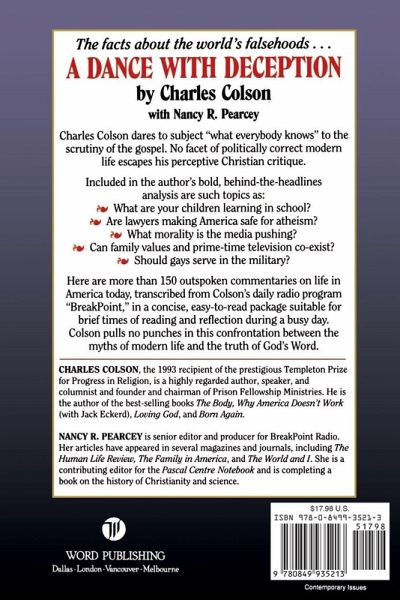 Here are more than 150 commentaries on life in America today, transcribed from Charles Colson's daily radio program "BreakPoint". Colson pulls no punches in this confrontation between the myths of modern life and the truth of God's Word.