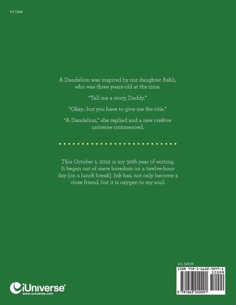 A Dandelion was inspired by our daughter Ashli, who was three years-old at the time. "Tell me a story, Daddy." "Okay...but you have to give me the title." "A Dandelion," she replied and a new cre8ive universe commenced.