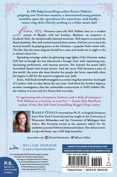 This dazzling new Victorian mystery from USA Today bestselling author Karen Odden introduces readers to Nell Hallam, a determined young pianist who stumbles upon the operations of a notorious-and deadly-crime ring while illicitly working as the piano player in a Soho music hall.
