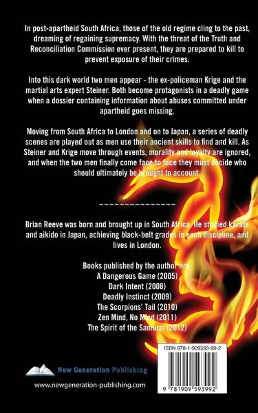 In post-apartheid South Africa, those of the old regime cling to the past, dreaming of regaining supremacy. With the threat of the Truth and Reconciliation Commission ever present, they are prepared to kill to prevent exposure of their crimes. Into this dark world two men appear - the ex-policeman Krige and the martial arts expert Steiner. Both become protagonists in a deadly game when a dossier containing information about abuses committed under apartheid goes missing. Moving from South Africa to London and on to Japan, a series of deadly scenes are played out as men use their ancient skills to find and kill. As Steiner and Krige move through events, morality and loyalty are ignored, and when the two men finally come face to face they must decide who should ultimately be brought to account. ~~~~~~~~~~~~~~~ Brian Reeve was born and brought up in South Africa. He studied karate and aikido in Japan, achieving black-belt grades in each discipline, and lives in London. Books published by the author are: A Dangerous Game (2005) Dark Intent (2008) Deadly Instinct (2009) The Scorpions' Tail (2010) Zen Mind, No Mind (2011) The Spirit of the Samurai (2012)