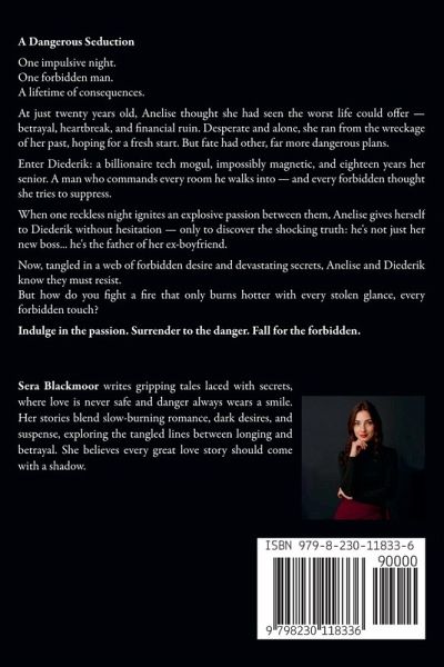 A Dangerous Seduction One impulsive night. One forbidden man. A lifetime of consequences. At just twenty years old, Anelise thought she had seen the worst life could offer - betrayal, heartbreak, and financial ruin. Desperate and alone, she ran from the wreckage of her past, hoping for a fresh start. But fate had other, far more dangerous plans. Enter Diederik: a billionaire tech mogul, impossibly magnetic, and eighteen years her senior. A man who commands every room he walks into - and every forbidden thought she tries to suppress. When one reckless night ignites an explosive passion between them, Anelise gives herself to Diederik without hesitation - only to discover the shocking truth: he's not just her new boss... he's the father of her ex-boyfriend. Now, tangled in a web of forbidden desire and devastating secrets, Anelise and Diederik know they must resist. But how do you fight a fire that only burns hotter with every stolen glance, every forbidden touch? Indulge in the passion. Surrender to the danger. Fall for the forbidden.