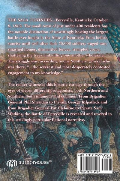THE SAGA CONINUES...Perryville, Kentucky, October 8, 1862. The small town of just under 400 residents has the notable distinction of unwittingly hosting the largest battle ever fought in the State of Kentucky. From before sunrise until well after dark 70,000 soldiers waged war, smashed homes, dismantled fences, trampled crops, shattering the trees and killing one another wholesale. The struggle was, according to one Southern general who was there, "...the severest and most desperately contested engagement to my knowledge." The reader witnesses this historic carnage through the eyes of eleven different protagonists, both Northern and Southern, both infamous and common. From Brigadier General Phil Sheridan to Private George Kilpatrick and from Brigadier General Pat Cleburne to Private Sam Watkins, the Battle of Perryville is revealed and revered in this strikingly particular fictional narrative.