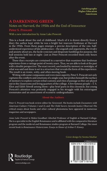 This is a book about the end of childhood. Much of it is drawn directly from a diary the author kept while he was a bright but insecure freshman at Harvard in the 1950s.