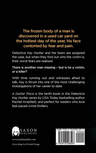 The frozen body of a man is discovered in a used car yard on the hottest day of the year, his face contorted by fear and pain. Detective Kay Hunter and her team are assigned the case, but when they find out who their victim is, their worst fears are realised. There is another man missing - but is he a victim, or a killer? With time running out and witnesses afraid to talk, Kay is thrust into one of the most challenging investigations of her career to date. A Darker Place is the tenth book in the Detective Kay Hunter series by USA Today bestselling author Rachel Amphlett, and perfect for readers who love fast-paced crime thrillers.