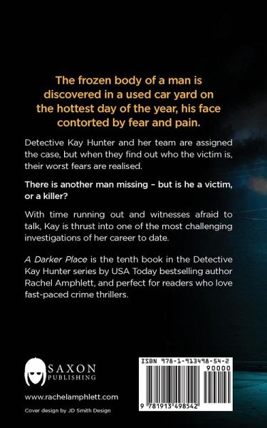 The frozen body of a man is discovered in a used car yard on the hottest day of the year, his face contorted by fear and pain. Detective Kay Hunter and her team are assigned the case, but when they find out who their victim is, their worst fears are realised. There is another man missing - but is he a victim, or a killer? With time running out and witnesses afraid to talk, Kay is thrust into one of the most challenging investigations of her career to date. A Darker Place is the tenth book in the Detective Kay Hunter series by USA Today bestselling author Rachel Amphlett, and perfect for readers who love fast-paced crime thrillers.