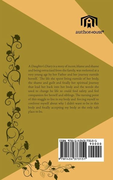 A Daughter's Diary is a story of incest, blame and shame and being ostracized from the family, was molested at a very young age by her Father and her journey outside herself. The life she spent living outside of her body, the shame and guilt and finally her spiritual journey that lead her back into her body and the words she used to change he life so could find safety and feel compassion for herself and siblings. The turning point of this stuggle to live in my body and forcing myself to confront myself about why I didn't want to be in this body and finally accepting my body as the only safe place to be.