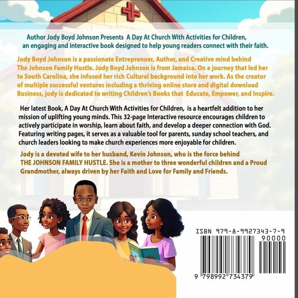 Author Jody Boyd Johnson Presents A Day at Church with Activities for Children, an engaging and interactive book designed to help young readers connect with their faith.Jody Boyd Johnson is a passionate Entrepreneur, Author, and Creative mind behind The Johnson Family Hustle. Jody Boyd Johnson is from Jamaica. On a journey that led her to South Carolina, she infused her rich cultural background into her work. As the creator of multiple successful ventures-including a thriving Online Store and Digital Download Business; Jody is dedicated to writing Children's Books that Educate, Empower, and Inspire.Her latest Book, A Day at Church with Activities for Children, is a heartfelt addition to her mission of uplifting young minds. This 32-page interactive resource encourages children to actively participate in worship, learn about faith, and develop a deeper connection with God. Featuring writing pages, it serves as a valuable tool for Parents, Sunday School Teachers, and Church Leaders looking to make church experiences more enjoyable for children.Jody is a devoted wife to her husband, Kevin Johnson, who is the force behind The Johnson Family Hustle. She is a mother to three wonderful children and a proud grandmother, always driven by her faith and love for family and friends.