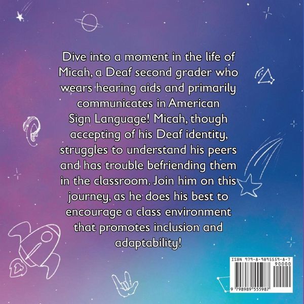 Dive into a moment in the life of Micah, a Deaf second grader who wears hearing aids and primarily communicates in American Sign Language! Micah, though accepting of his Deaf identity, struggles to understand his peers and has trouble befriending them in the classroom. Join him on this journey, as he does his best to encourage a class environment that promotes inclusion and adaptability!