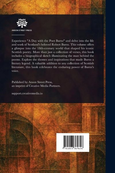Experience "A Day with the Poet Burns" and delve into the life and work of Scotland's beloved Robert Burns. This volume offers a glimpse into the 18th-century world that shaped his iconic Scottish poetry. More than just a collection of verses, this book includes a biographical sketch illuminating the man behind the poems. Explore the themes and inspirations that made Burns a literary legend. A valuable addition to any collection of Scottish literature, this book celebrates the enduring power of Burns's voice. This work has been selected by scholars as being culturally important, and is part of the knowledge base of civilization as we know it. This work is in the public domain in the United States of America, and possibly other nations. Within the United States, you may freely copy and distribute this work, as no entity (individual or corporate) has a copyright on the body of the work. Scholars believe, and we concur, that this work is important enough to be preserved, reproduced, and made generally available to the public. We appreciate your support of the preservation process, and thank you for being an important part of keeping this knowledge alive and relevant.