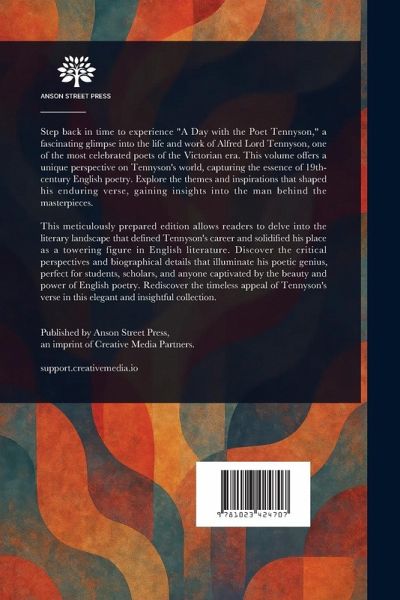 Step back in time to experience "A Day with the Poet Tennyson," a fascinating glimpse into the life and work of Alfred Lord Tennyson, one of the most celebrated poets of the Victorian era. This volume offers a unique perspective on Tennyson's world, capturing the essence of 19th-century English poetry. Explore the themes and inspirations that shaped his enduring verse, gaining insights into the man behind the masterpieces. This meticulously prepared edition allows readers to delve into the literary landscape that defined Tennyson's career and solidified his place as a towering figure in English literature. Discover the critical perspectives and biographical details that illuminate his poetic genius, perfect for students, scholars, and anyone captivated by the beauty and power of English poetry. Rediscover the timeless appeal of Tennyson's verse in this elegant and insightful collection. This work has been selected by scholars as being culturally important, and is part of the knowledge base of civilization as we know it. This work is in the public domain in the United States of America, and possibly other nations. Within the United States, you may freely copy and distribute this work, as no entity (individual or corporate) has a copyright on the body of the work. Scholars believe, and we concur, that this work is important enough to be preserved, reproduced, and made generally available to the public. We appreciate your support of the preservation process, and thank you for being an important part of keeping this knowledge alive and relevant.