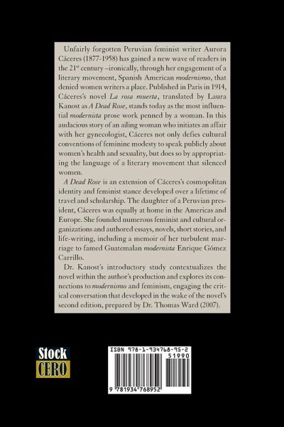 Unfairly forgotten Peruvian feminist writer Aurora Cáceres(1877-1958) has gained a new wave of readers in the 21stcentury –ironically, through her engagement of a literary movement, Spanish American modernismo, that denied women writers a place. Published in Paris in 1914, Cáceres’s novel La rosa muerta, translated by Laura Kanost as A Dead Rose, stands today as the most influential modernistaprose work penned by a woman. In this audacious story of an ailing woman who initiates an affair with her gynecologist, Cáceres not only defies cultural conventions of feminine modesty to speak publicly about women’s health and sexuality, but does so by appropriating the language of a literary movement that silenced women.Unlike her most of her contemporaries, Cáceres does not reduce illness to a clinical case, an example of degeneration, or a symbol of social ills –nor does her protagonist’s affliction merely signal the social deviance of the modernistaintellectual or the beauty ascribed to the objectified modernistawoman, seen as still more beautiful if languishing or dead. Rather, Cáceres portrays illness as a multifaceted experience that is affected by the social context within which it takes place and ultimately is not overcome through modern medicine. Left to carry on into the future are two characters who thrive because they are not constrained by gender conventions: a nurturing, selfless male doctor devoted to science, and his beautiful and deeply intelligent young daughter. A Dead Roseis an extension of Cáceres’s cosmopolitan identity and feminist stance developed over a lifetime of travel and scholarship. The daughter of a Peruvian president, Cáceres was equally at home in the Americas and Europe. She founded numerous feminist and cultural organizations and authored essays, novels, short stories, and life-writing, including a memoir of her turbulent marriage to famed Guatemalan modernistaEnrique Gómez Carrillo. Steeped in the modern technologies, fashions, and social networks of early 20th-century Paris and Berlin, this brief and engaging novel will appeal to readers interested in gender and women’s studies, global literature, and medical humanities. Dr. Kanost’s introductory study contextualizes the novel within the author’s production and explores its connections to modernismoand feminism, engaging the critical conversation that developed in the wake of the novel’s second edition, prepared by Dr. Thomas Ward (2007).