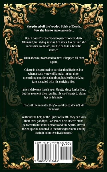 She pissed off the Voodoo Spirit of Death. Now she has to make amends… Death doesn't scare Voodoo practitioner Odette Allemand, but dying sure as hell does. Every time she meets her soulmate, her life ends in a horrific murder. Then she's reincarnated to have it happen all over again. Odette is determined to survive this lifetime, but when a sexy werewolf knocks on her door, unearthing emotions she thought she'd buried, her fate is sealed with his enticing kiss. James Malveaux hasn't seen Odette since junior high, but the moment they reunite, his wolf wants to claim her as his mate. That's if…mehr