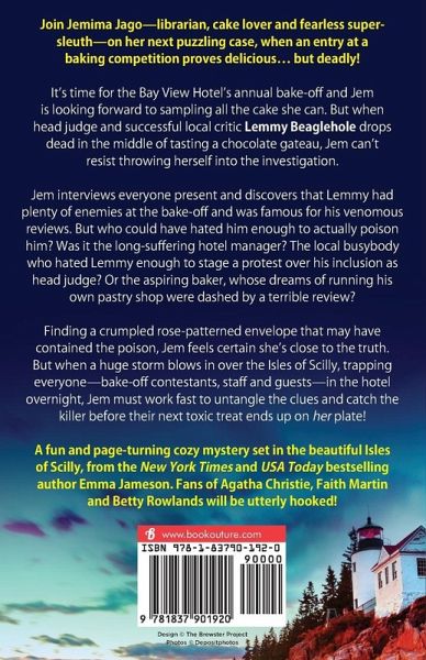 Join Jemima Jago-librarian, cake lover and fearless super-sleuth-on her next puzzling case, when an entry at a baking competition proves delicious... but deadly! It's time for the Bay View Hotel's annual bake-off and Jem is looking forward to sampling all the cake she can. But when head judge and successful local critic Lemmy Beaglehole drops dead in the middle of tasting a chocolate gateau, Jem can't resist throwing herself into the investigation. Jem interviews everyone present and discovers that Lemmy had plenty of enemies at the bake-off and was famous for his venomous reviews. But who could have hated him enough to actually poison him? Was it the long-suffering hotel manager? The local busybody who hated Lemmy enough to stage a protest over his inclusion as head judge? Or the aspiring baker, whose dreams of running his own pastry shop were dashed by a terrible review? Finding a crumpled rose-patterned envelope that may have contained the poison, Jem feels certain she's close to the truth. But when a huge storm blows in over the Isles of Scilly, trapping everyone-bake-off contestants, staff and guests-in the hotel overnight, Jem must work fast to untangle the clues and catch the killer before their next toxic treat ends up on her plate! A fun and page-turning cozy mystery set in the beautiful Isles of Scilly, from the New York Times and USA Today bestselling author Emma Jameson. Fans of Agatha Christie, Faith Martin and Betty Rowlands will be utterly hooked! What readers are saying about Emma Jameson: "Wow. I love it... So fabulous that I stayed up half the night finishing it! Joy!" Goodreads reviewer, ¿¿¿¿¿ "AMAZING story! I just loved the humorous banter." Goodreads reviewer, ¿¿¿¿¿ "So much fun... The plot twists and turns kept me flying through the pages. Just when you think you have it figured out, something else pops up, and keeps you guessing... A wonderful escape... Definitely a must-read." Page Turners Reviews, ¿¿¿¿¿ "Deserves ten stars. I don't remember breathing as I read the last third of this book." Goodreads reviewer, ¿¿¿¿¿ "Crackles with revenge, intrigue and murder. I couldn't put it down... Captivating." Goodreads reviewer, ¿¿¿¿¿