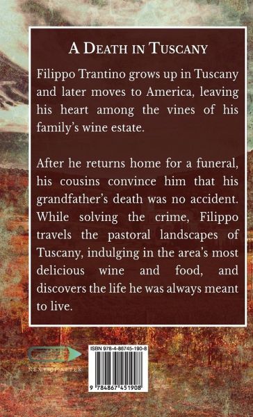 "As much a crime novel as an authoritative travelogue and wine tutorial... an enjoyable read for Tuscany aficionados in particular." - Ambassador Magazine Filippo Trantino grows up in Tuscany and later moves to America, leaving his heart among the vines of his family's wine estate. After he returns home for a funeral, his cousins convince him that his grandfather's death was no accident. While solving the crime, Filippo travels the pastoral landscapes of Tuscany, indulging in the area's most delicious wine and food, and discovers the life he was always meant to live.