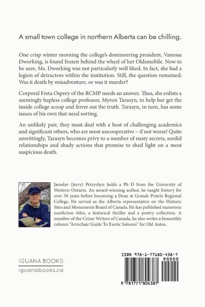 A small town college in northern Alberta can be chilling. One crisp winter morning the college's domineering president, Vanessa Dworking, is found frozen behind the wheel of her Oldsmobile. Now to be sure, Ms. Dworking was not particularly well liked. In fact, she had a legion of detractors within the institution. Still, the question remained: Was it death by misadventure, or was it murder? Corporal Freta Osprey of the RCMP needs an answer. Thus, she enlists a seemingly hapless college professor, Myron Tarasyn, to help her get the inside college scoop and ferret out the truth. Tarasyn, in turn, has some issues of his own that need sorting. An unlikely pair, they must deal with a host of challenging academics and significant others, who are most uncooperative - if not worse! Quite unwittingly, Tarasyn becomes privy to a number of nasty secrets, sordid relationships and shady actions that promise to shed light on a most suspicious death.