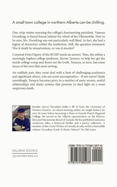 A small town college in northern Alberta can be chilling. One crisp winter morning the college's domineering president, Vanessa Dworking, is found frozen behind the wheel of her Oldsmobile. Now to be sure, Ms. Dworking was not particularly well liked. In fact, she had a legion of detractors within the institution. Still, the question remained: Was it death by misadventure, or was it murder? Corporal Freta Osprey of the RCMP needs an answer. Thus, she enlists a seemingly hapless college professor, Myron Tarasyn, to help her get the inside college scoop and ferret out the truth. Tarasyn, in turn, has some issues of his own that need sorting. An unlikely pair, they must deal with a host of challenging academics and significant others, who are most uncooperative - if not worse! Quite unwittingly, Tarasyn becomes privy to a number of nasty secrets, sordid relationships and shady actions that promise to shed light on a most suspicious death.