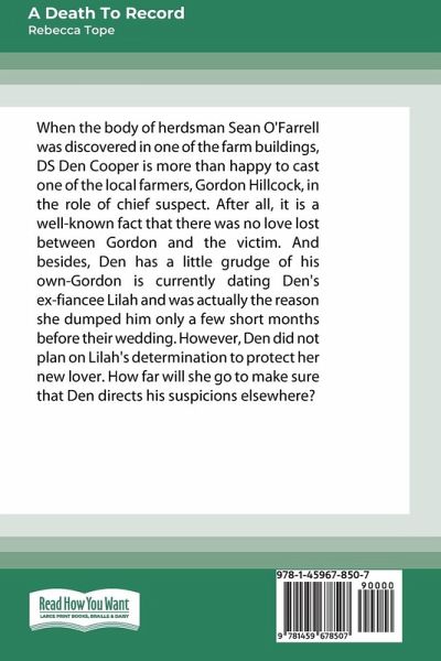 When the body of herdsman Sean O'Farrell was discovered in one of the farm buildings, DS Den Cooper is more than happy to cast one of the local farmers, Gordon Hillcock, in the role of chief suspect. After all, it is a well - known fact that there was no love lost between Gordon and the victim. And besides, Den has a little grudge of his own - Gordon is currently dating Den's ex - fiancee Lilah and was actually the reason she dumped him only a few short months before their wedding. However, Den did not plan on Lilah's determination to protect her new lover. How far will she go to make sure that Den directs his suspicions elsewhere?
