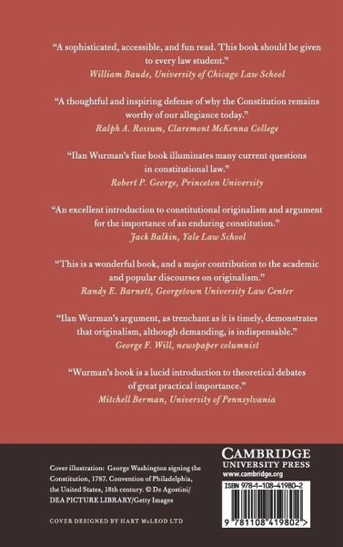 'Ilan Wurman's fine book explores a classic question about constitutions, especially written constitutions, and most especially ours: Why should people in later generations feel bound by rules put in place by people in earlier generations? Wurman has provided a careful, detailed, and properly nuanced argument for James Madison's suggestion that the constitutional order gives rise to a kind of 'debt' that the living have to the dead - an argument that illuminates many current questions in constitutional law.' Robert P. George, McCormick Professor of Jurisprudence and Director of the James Madison Program in American Ideals and Institutions, Princeton University, New Jersey