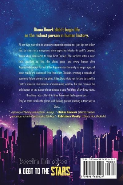 A Kirkus "BEST OF 2023" selection! "... a journey of healing and heroism... " - Kirkus Reviews (starred review) "... uproarious... scifi that gets readers thinking." - Publishers Weekly (BookLife Editor's Pick) With space-faring predators circling the planet, Earth's only hope is an aged heiress with faltering prosthetics, and her foul-mouthed, extaraterrestrial forensic accountant. Diana Roark, heiress, scientist, and adventurer, never wanted to end up as the richest person in human history. But she inherits her father's fortune, and tries to spend her wealth to benefit humanity. Then First Contact - with the alien Known Economy - utterly changes life on earth, and she's left with a business empire worth almost nothing, and emotional debts she can never repay. Thirty years after First Contact she's managed to rebuild her empire, almost by accident, when the Known Economy returns. This time they've come for payment on Earth's debt - and their price is the harvest of human sentience. Diana, now aged and sick with a disease the rest of humanity is immune to, teams up with a gelatinous purple Neoooxcolu who's been assigned as her alien Account Representative. Together they must find a way to buy the planet's freedom. The aliens will kill to stop her, if her own terrible debts don't finish her first ...