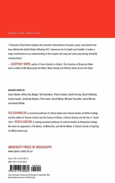 Essays that illustrate how humor transformed 9/11 politics and 9/11 transformed humor With essays by: Gavin Benke Arthur Asa Berger Ted Gournelos Viveca S. Greene David Gurney David Holloway Lanita Jacobs Giselinde Kuipers Paul Lewis David Monje Michael Truscello Jamie Warner Aaron Winter A Decade of Dark Humor analyzes ways in which popular and visual culture used humor--in a variety of forms--to confront the attacks of September 11, 2001, and, more specifically, the aftermath. This interdisciplinary volume brings together scholars from four countries to discuss the impact of humor and irony on both media discourse and tangible political reality. Furthermore, it demonstrates that laughter is simultaneously an avenue through which social issues are deferred or obfuscated, a way in which neoliberal or neoconservative rhetoric is challenged, and a means of forming alternative political ideologies. The volume's contributors cover a broad range of media productions, including news parodies (The Daily Show with Jon Stewart, The Colbert Report, The Onion), TV roundtable shows (Politically Incorrect with Bill Maher), comic strips and cartoons (Aaron McGruder's The Boondocks, Jeff Danzinger's editorial cartoons), television drama (Rescue Me), animated satire (South Park), graphic novels (Art Spiegelman's In the Shadow of No Towers), documentary (Fahrenheit 9/11), and other productions. Along with examining the rhetorical methods and aesthetic techniques of these productions, the essays place each in specific political and journalistic contexts, showing how corporations, news outlets, and political institutions responded to--and sometimes co-opted--these forms of humor. Ted Gournelos, Orlando, Florida, is assistant professor of critical media and cultural studies at Rollins College, and the author of Popular Culture and the Future of Politics: Cultural Studies and the Tao of "South Park." Viveca S. Greene, Northampton, Massachusetts, is visiting assistant professor of cultural studies at Hampshire College. Her work has appeared in The Nation, In Media Res, and We the Media: A Citizen's Guide to Fighting for Media Democracy.