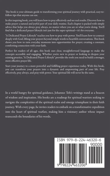 This book is your ultimate guide to transforming your spiritual journey with practical, easy-to-follow tips that anyone can use. In this inspiring book, you will learn how to pray effectively and see real results. Discover how to make prayer a natural and joyful part of your daily routine. Each chapter is packed with simple advice that helps you always pray always, no matter where you are or what you're doing. You'll find that a dedicated prayer lifestyle isn't just for the super-spiritual-it's for everyone. "A Dedicated Prayer Lifestyle" teaches you how to pray with power. You'll learn how to connect deeply with God, lifting your prayers beyond simple words to heartfelt conversations. This book shows you how to turn everyday moments into opportunities for prayer, creating a constant, comforting connection with your faith. Perfect for readers of all ages, this book uses clear, straightforward language to make the concepts accessible and engaging. Whether you're new to prayer or looking to deepen your existing practice, "A Dedicated Prayer Lifestyle" provides the tools you need to build a stronger, more effective prayer life. Start your journey to a more powerful and fulfilling prayer experience today. With this book, you can transform your prayers into a dynamic and empowering part of your life. Pray effectively, pray always, and pray with power. Your spiritual life will never be the same.
