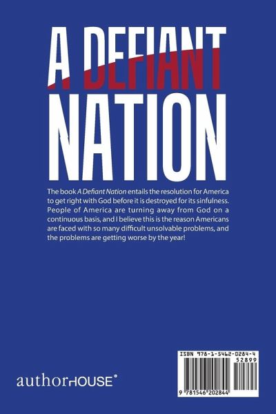 The book A Defiant Nation entails the resolution for America to get right with God before it is destroyed for its sinfulness. People of America are turning away from God on a continuous basis, and I believe this is the reason Americans are faced with so many difficult unsolvable problems, and the problems are getting worse by the year!