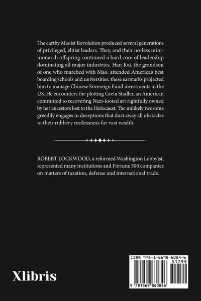 The earthy Maoist Revolution produced several generations of privileged, elitist leaders. They, and their no-less mini-monarch offspring continued a hard core of leadership dominating all major industries. Han Kai, the grandson of one who marched with Mao, attended America's best boarding schools and universities; these earmarks projected him to manage Chinese Sovereign Fund investments in the US. He encounters the plotting Greta Stadler, an American committed to recovering Nazi-looted art rightfully owned by her ancestors lost to the Holocaust. The unlikely twosome greedily engages in deceptions that dust away all obstacles to their rubbery restlessness for vast wealth.