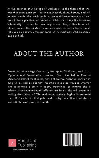 At the essence of A Deluge of Darkness lies the theme that one would expect: darkness. That includes grief, allure, beauty, and, of course, death. This book seeks to paint different aspects of the dark in both positive and negative lights, and show the immense subjectivity of even the most unpleasant things. This book will place you into the minds of characters such as Death himself, and take you on a journey through some of the most powerful emotions one can feel.