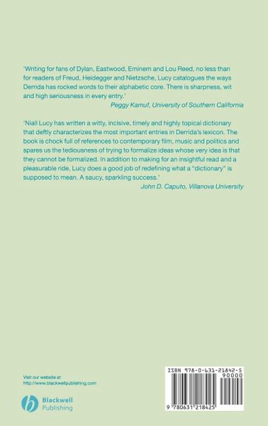 "Niall Lucy has written a witty, incisive, timely and highly topical dictionary that deftly characterizes the most important entries in Derrida s lexicon. The book is chock full of references to contemporary film, music and politics and spares us the tediousness of trying to formalize ideas whose very idea is that they cannot be formalized. In addition to making for an insightful read and a pleasurable ride, Lucy does a good job of redefining what a "dictionary" is supposed to mean. A saucy, sparkling success." John D. Caputo, Villanova University