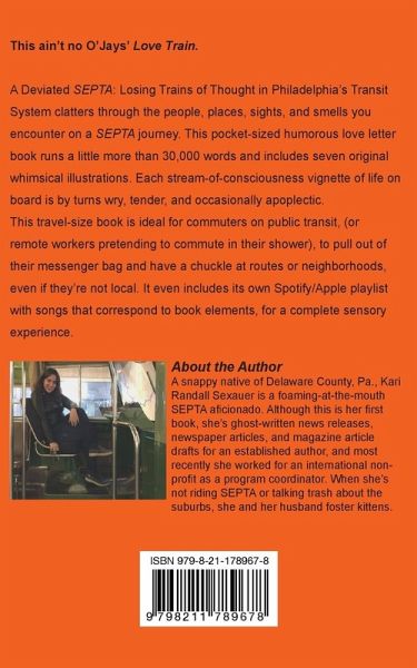 A Deviated SEPTA: Losing Trains of Thought in Philadelphia's Transit System clatters through the people, places, sights, and smells you encounter on a SEPTA journey. This pocket-sized humorous love letter book runs a little more than 30,000 words and includes seven original whimsical illustrations. Each stream-of-consciousness vignette of life on board is by turns wry, tender, and occasionally apoplectic. This travel-size book is ideal for commuters on public transit, or remote workers pretending to commute in their shower, to pull out of their messenger bag and have a chuckle at routes or…mehr